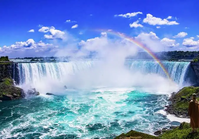 น้ำตกไนแองการ่ากินพื้นที่ทั้งสองพรมแดน โดยฝั่งแคนาดาจะตั้งอยู่ที่รัฐออนตาริโอ (Ontario) และฝั่งสหรัฐอเมริกาจะตั้งอยู่ที่รัฐนิวยอร์ก (New York) นั่นเอง คุณสามารถเดินทางเพื่อเยือนน้ำตกไนแองการ่าทั้งสองฟากฝั่งได้ด้วยสะพานเรนโบว์ (Rainbow Bridge) ที่เชื่อมต่อพรมแดนแคนาดาและอเมริกาได้เลย แต่ต้องมีพาสปอร์ตและวีซ่าสำหรับเข้าเมืองด้วยนะ
