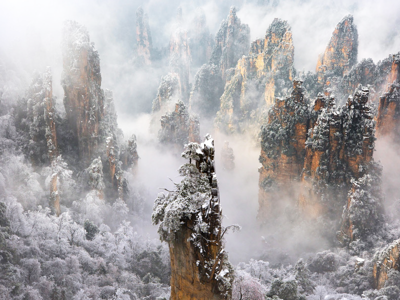 อุทยานจางเจียเจี้ย ( Zhangjiajie National Forest Park) เป็นหนึ่งในอุทยานแห่งชาติที่ดีที่สุดของจีน พอมาถึงจะได้เห็นวิวในตำนานของจางเจียเจี้ย (Zhagnjiajie) เขาหินทรายที่สูงตระหง่านเสียดฟ้าท่ามกลางทะลหมอก สัตว์ป่าธรรมชาติ และแม่น้ำที่สงบเงียบ
